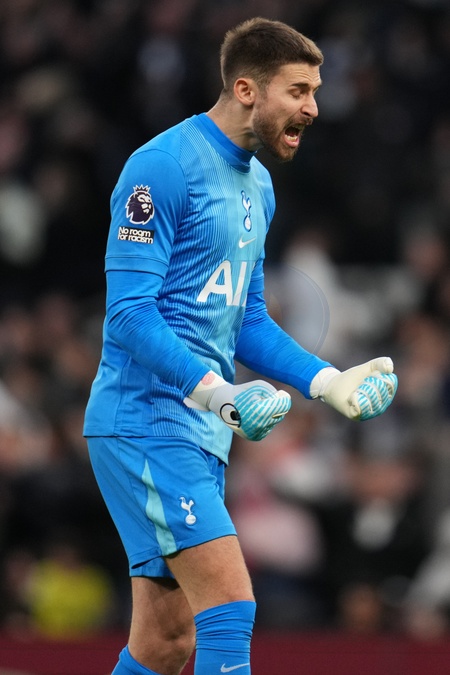 Guglielmo Vicario of Tottenham Hotspur celebrates goal during the Premier League match Tottenham Hotspur vs Brentford at Tottenham Hotspur Stadium, London, United Kingdom, 6th December 2025, Credit:Harvey Murphy/News Images / Avalon