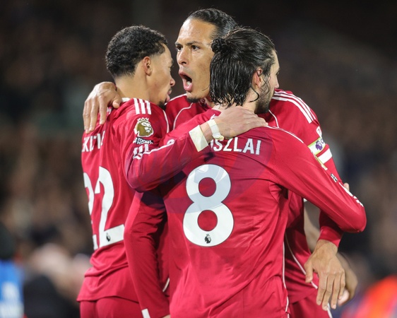 Dominik Szoboszlai of Liverpool Virgil van Dijk of Liverpool and Hugo Ekitike of Liverpool celebrate during the Premier League match Leeds United vs Liverpool at Elland Road, Leeds, United Kingdom, 6th December 2025, Credit:Richard Bierton/News Images / Avalon