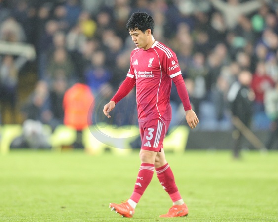 Wataru Endo of Liverpool looks dejected at full time during the Premier League match Leeds United vs Liverpool at Elland Road, Leeds, United Kingdom, 6th December 2025, Credit:Richard Bierton/News Images / Avalon