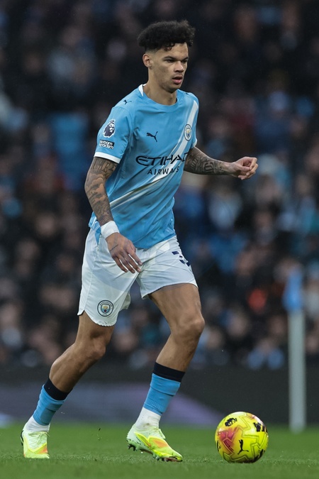 Nico O'Reilly of Manchester City with the ball during the Premier League match Manchester City vs Sunderland at Etihad Stadium, Manchester, United Kingdom, 6th December 2025, Credit:Mark Cosgrove/News Images / Avalon
