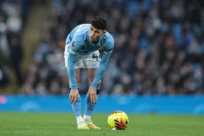Phil Foden of Manchester City lines up a free kick during the Premier League match Manchester City vs Sunderland at Etihad Stadium, Manchester, United Kingdom, 6th December 2025, Credit:Mark Cosgrove/News Images / Avalon