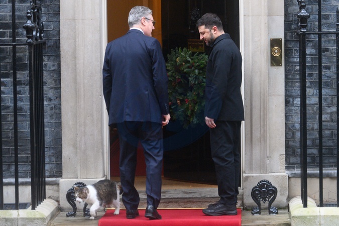 Volodymyr Zelenskyy - President of Ukraine arrives for a Quad-lateral meeting on Ukraine with British Prime Minister Sir Keir Starmer, German Chancellor Friedrich Merz and French President Emmanuel Macron in Downing Street, London, England, UK on Monday 8 December, 2025., Credit:Justin Ng / Avalon