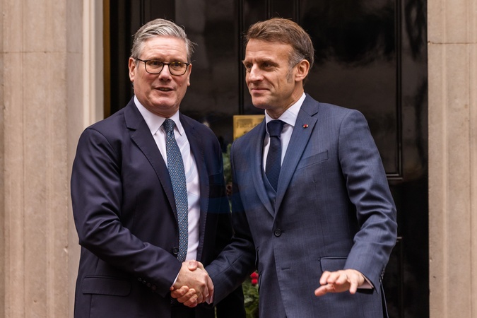 Downing Street, London, UK. 8th December 2025. British Prime Minister, Keir Starmer, welcomes French President Emmanuel Macron to Downing Street, London, UK.The meeting, along with Ukrainian President Volodymyr Zelenskyy and German Chancellor Friedrich Merz, is to discuss ending the war in Ukraine., Credit:Photo by Amanda Rose / Avalon