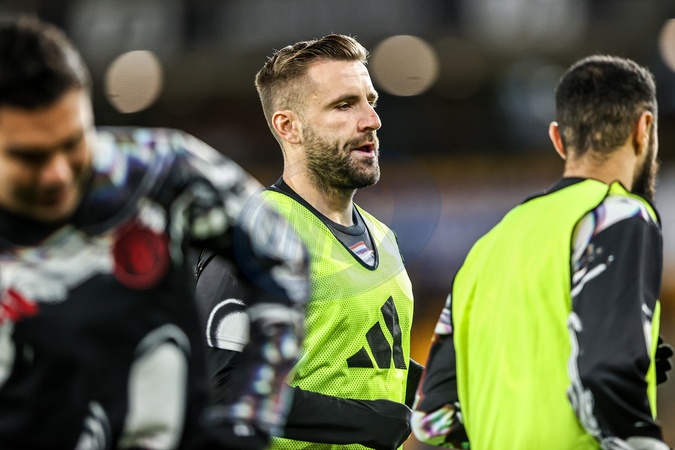 Luke Shaw of Manchester Untied in the pregame warmup session during the Premier League match Wolverhampton Wanderers vs Manchester United at Molineux, Wolverhampton, United Kingdom, 8th December 2025, Credit:Ae Cosgrove/News Images / Avalon