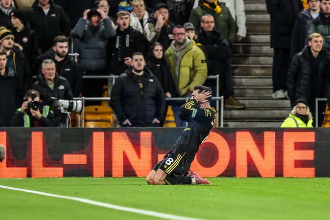 Bruno Fernandes of Manchester Untied celebrates his goal to make it 0-1 during the Premier League match Wolverhampton Wanderers vs Manchester United at Molineux, Wolverhampton, United Kingdom, 8th December 2025, Credit:Ae Cosgrove/News Images / Avalon