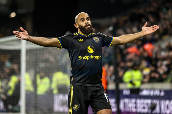 Bryan Mbeumo of Manchester Untied celebrates his goal to make it 1-2 during the Premier League match Wolverhampton Wanderers vs Manchester United at Molineux, Wolverhampton, United Kingdom, 8th December 2025, Credit:Ae Cosgrove/News Images / Avalon