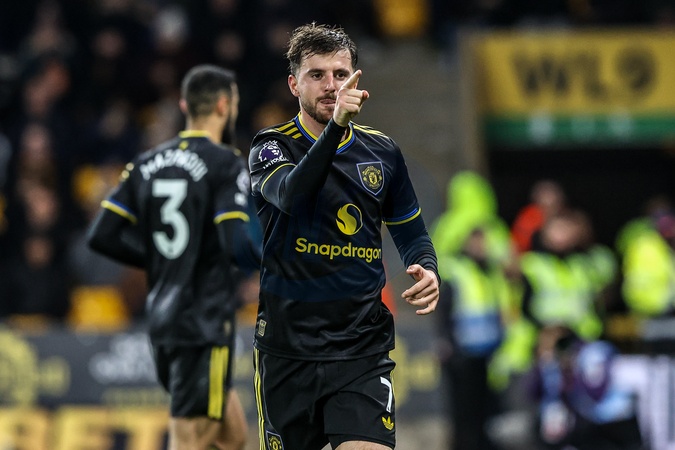 Mason Mount of Manchester Untied celebrates his goal to make it 1-3 during the Premier League match Wolverhampton Wanderers vs Manchester United at Molineux, Wolverhampton, United Kingdom, 8th December 2025, Credit:Ae Cosgrove/News Images / Avalon