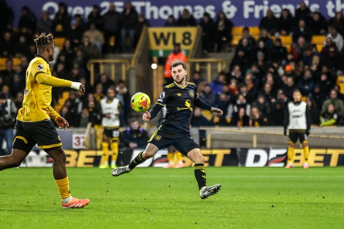 Mason Mount of Manchester Untied scores to make it 1-3 during the Premier League match Wolverhampton Wanderers vs Manchester United at Molineux, Wolverhampton, United Kingdom, 8th December 2025, Credit:Ae Cosgrove/News Images / Avalon
