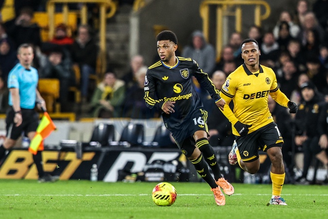 Amad Diallo of Manchester Untied breaks with the ball during the Premier League match Wolverhampton Wanderers vs Manchester United at Molineux, Wolverhampton, United Kingdom, 8th December 2025, Credit:Ae Cosgrove/News Images / Avalon