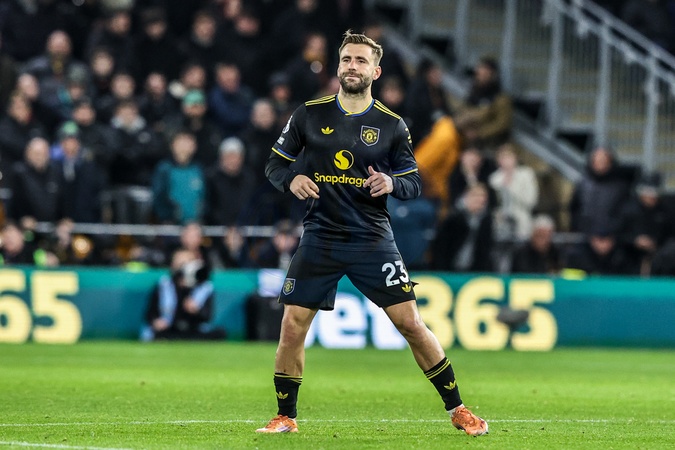 Luke Shaw of Manchester Untied during the Premier League match Wolverhampton Wanderers vs Manchester United at Molineux, Wolverhampton, United Kingdom, 8th December 2025, Credit:Ae Cosgrove/News Images / Avalon