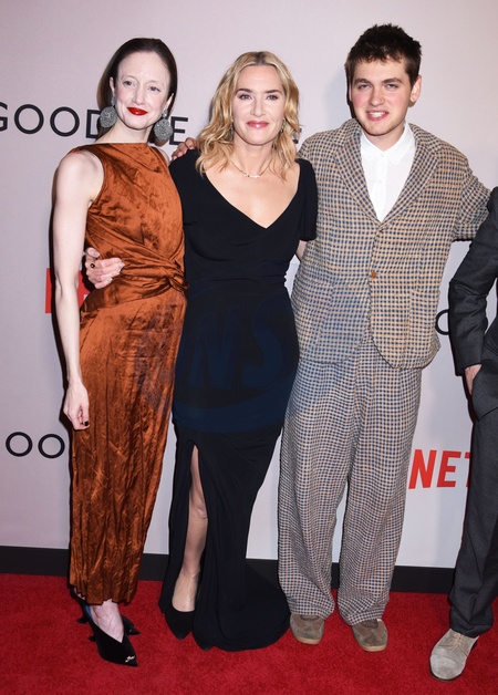 Andrea Riseborough ,Kate Winslet and Joe Anders at Netflix's Goodbye June NY screening at the Whitby Hotel on December 8, 2025 in New York city., Credit:Darla Khazei / Avalon