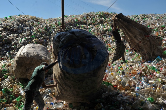 Chattogram, Bangladesh- Workers collect and sort discarded plastic bottles at a recycling facility in Chattogram, Bangladesh. These plastic wastes are later processed and transformed into new household products, underscoring both the environmental burden of plastic pollution and the vital role of recycling in the circular economy., Credit:Md Rafayat Haque Khan / Avalon