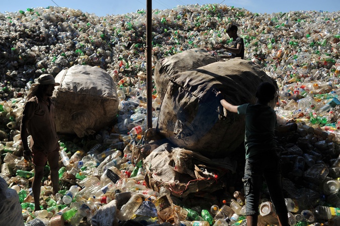 Chattogram, Bangladesh- Workers collect and sort discarded plastic bottles at a recycling facility in Chattogram, Bangladesh. These plastic wastes are later processed and transformed into new household products, underscoring both the environmental burden of plastic pollution and the vital role of recycling in the circular economy., Credit:Md Rafayat Haque Khan / Avalon