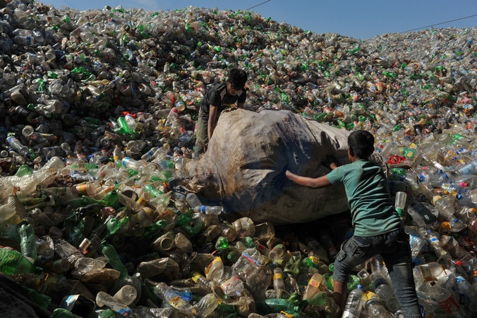 Chattogram, Bangladesh- Workers collect and sort discarded plastic bottles at a recycling facility in Chattogram, Bangladesh. These plastic wastes are later processed and transformed into new household products, underscoring both the environmental burden of plastic pollution and the vital role of recycling in the circular economy., Credit:Md Rafayat Haque Khan / Avalon