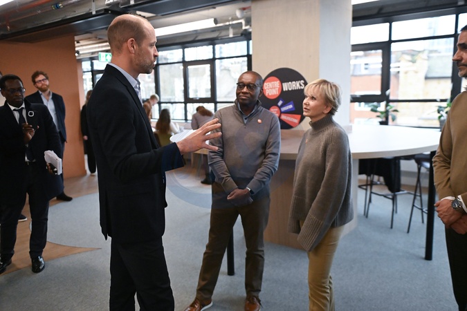 London, UK, 09 December 2025: London, UK, 09 December 2025: William, Prince of Wales, Patron of Centrepoint visits the charity's new offices in London to mark his 20th anniversary as their Patron. Centrepoint is one of His Royal Highness's longest Patronages, having taken over from his mother Princess Diana. Accompanied by Seyi Obakin OBE, CEO Centrepoint and Centrepoint ambassador Lisa Maxwell., Credit:Eddie Mulholland / Avalon