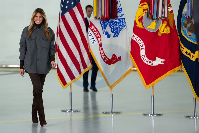 First Lady Melania Trump and Second Lady Usha Vance join the American Red Cross to deliver holiday care packages to military spouses at Joint Base Andrews, Monday, December 1, 2025., Credit:Andrea Hanks / Avalon