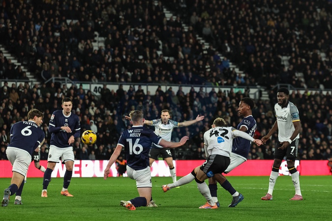 Bobby Clark of Derby County shoots on goal during the Sky Bet Championship match Derby County vs Millwall at Pride Park Stadium, Derby, United Kingdom, 10th December 2025, Credit:Mark Cosgrove/News Images / Avalon