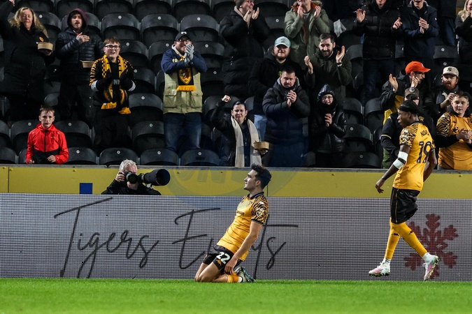 Kyle Joseph of Hull City celebrates his goal to make it 1-0 during the Sky Bet Championship match Hull City vs Wrexham at MKM Stadium, Hull, United Kingdom, 10th December 2025, Credit:Ae Cosgrove/News Images / Avalon