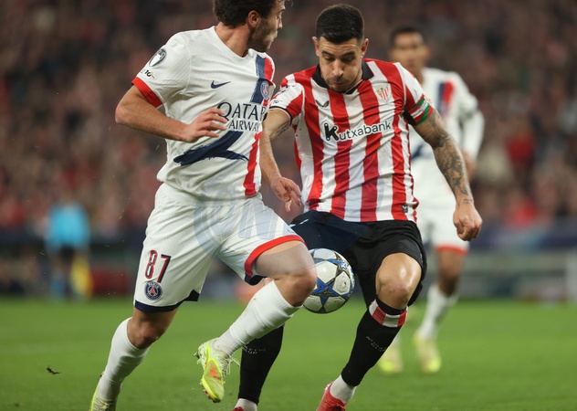 Athletic Club v Paris Saint-Germain PSG - UEFA Champions Joao Neves (Paris Saint-Germain) and Yuri Berchiche (Athletic Club) battle for the ball, Credit:Juan Lazkano / Avalon