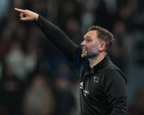 John Eustace manager of Derby County reacts in the technical area during the Sky Bet Championship match Derby County vs Millwall at Pride Park Stadium, Derby, United Kingdom, 10th December 2025, Credit:Mark Cosgrove/News Images / Avalon