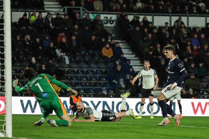 Matt Clarke of Derby County scores an own goal to make it 0-1 during the Sky Bet Championship match Derby County vs Millwall at Pride Park Stadium, Derby, United Kingdom, 10th December 2025, Credit:Mark Cosgrove/News Images / Avalon