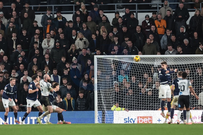 Matt Clarke of Derby County scores to make it 1-1 during the Sky Bet Championship match Derby County vs Millwall at Pride Park Stadium, Derby, United Kingdom, 10th December 2025, Credit:Mark Cosgrove/News Images / Avalon