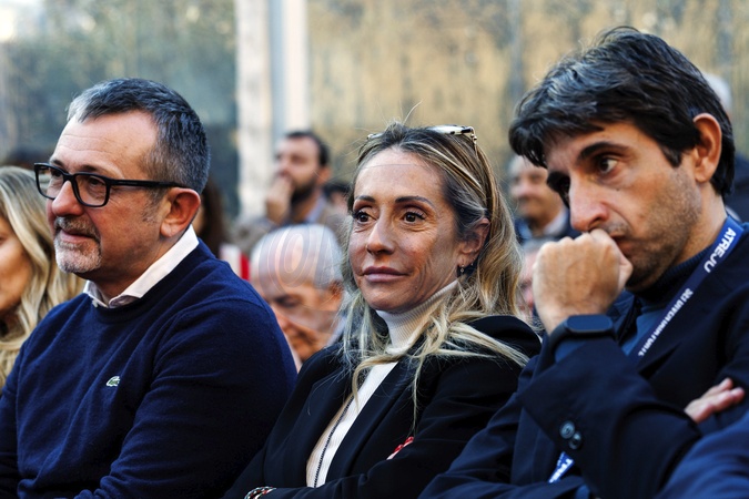 Atreju 2025, Brothers of Italy party. Meeting "A long-awaited reform: the separation of careers." Pictured are Undersecretary of Justice Andrea Delmastro delle Vedove, Arianna Meloni, and Giovanni Donzelli. Rome, Italy 11 December 2025, Credit:Francesco Fotia / Avalon