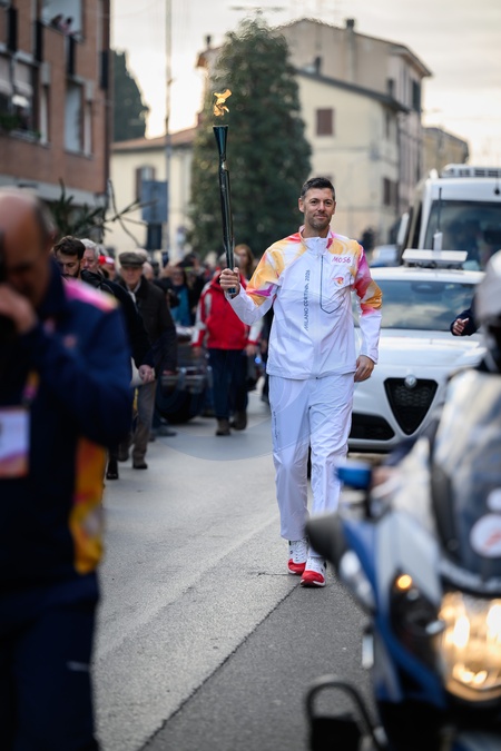 The Olympic Torch passes through Pontedera, the city of motors for the Milan Cortina 2026 Winter Olympics . Pontedera, Italy 11 December 2025, Credit:Stefano Dalle Luche / Avalon