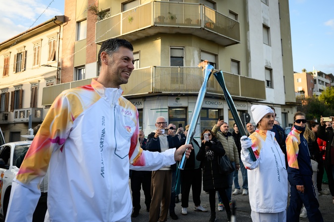 The Olympic Torch passes through Pontedera, the city of motors for the Milan Cortina 2026 Winter Olympics . Pontedera, Italy 11 December 2025, Credit:Stefano Dalle Luche / Avalon