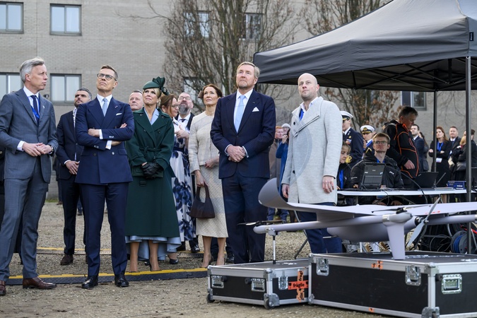 Amsterdam, The Netherlands, 2025-12-11 11:20:38AMSTERDAM, 11-12-2025, Marineterrein State visit of the President of Finland, Alexander Stubb, to the Netherlands. He is accompanied by his wife, Suzanne Innes-Stubb. At the Marineterrein (MEA), the Royal Couple, the Finnish President, and Mrs. Innes-Stubb will visit the Amsterdam Drone Lab, where they will learn about the use of drones for various civilian purposes, with relevance to the energy and defense sectors. Students and instructors will discuss topics including Defensity College. PHOTO: NLBeeld/Patrick van Emst, Credit:Avalon