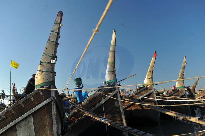 Chattogram, Bangladesh — At winter's first light, labourers in blue plastic aprons unload fresh catch from trawlers at Fisharighat, a key maritime hub, powering Bangladesh's fishing industry, climate-vulnerable coast, marine economy, food security sector, global seafood supply chain, aquaculture growth, and shrimp-export market., Credit:Md Rafayat Haque Khan / Avalon