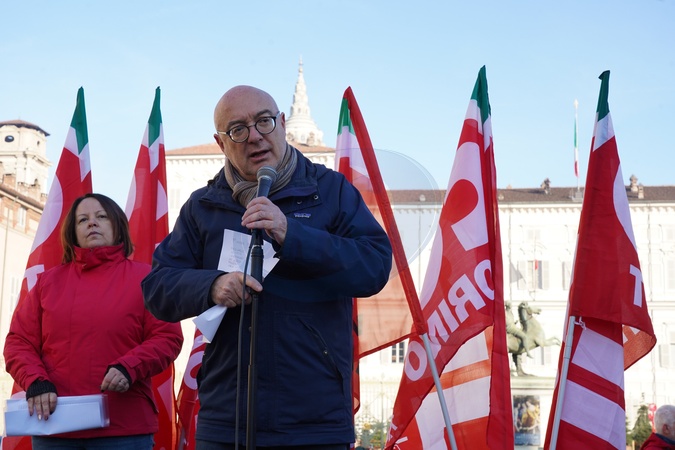 CGIL march during the national strike called by the union. Pictured is CGIL Turin General Secretary Federico Bellono. Turin, Italy 12 December 2025, Credit:Selene Daniele / Avalon