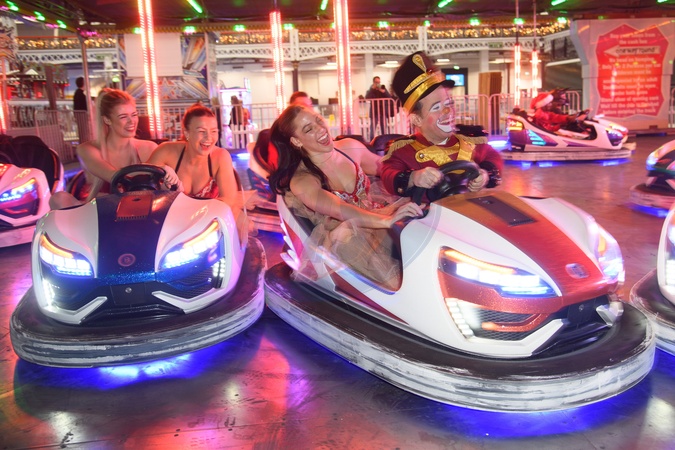 Performers on the dodgem cars at a photocall for Winter Funland which runs from 13th December 2025 - 4th January 2026 at Olympia London in London, England, UK on Friday 12 December, 2025., Credit:Justin Ng / Avalon