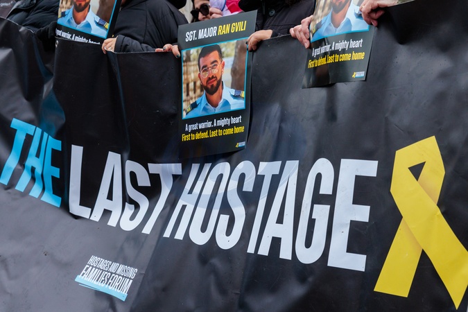 Borehamwood Shopping Park, UK. 12th December 2025.At the weekly hostage vigil, members of the Elstree and Borehamwood community hear of the actions on 7th Oct 2023 of IDF Staff-Sergeant Major Ran Gvili, the last remaining hostage held in Gaza.Ran, who was due for an operation on his broken shoulder on 9th Oct, fought Hamas militants around Kibbutz Alumim and helped rescue 100 people from the Nova music festival.As a result of their heroism, not a single resident inside Kibbutz Alumim was murdered or kidnapped that day., Credit:Photo by Amanda Rose / Avalon