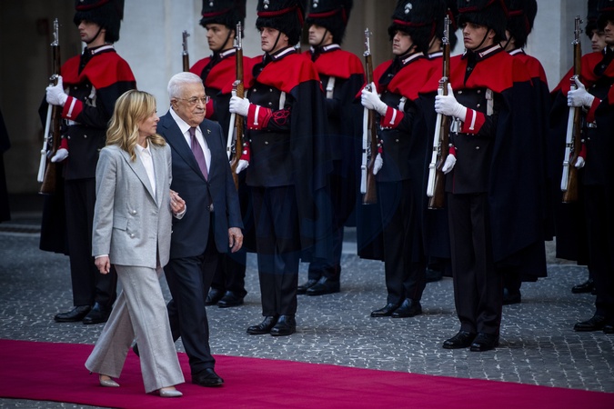 Prime Minister Giorgia Meloni receives Palestinian President Mahmoud Abbas at Palazzo Chigi. Rome, Italy 12 December 2025, Credit:Alessandro Serrano' / Avalon