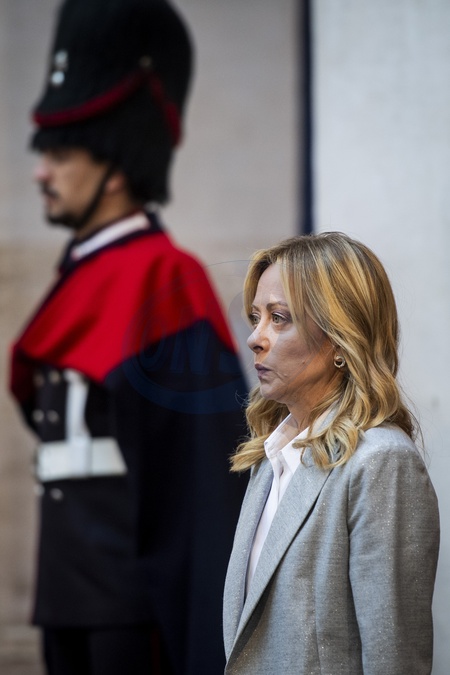 Prime Minister Giorgia Meloni receives the President of Palestine at Palazzo Chigi. Rome, Italy 12 December 2025, Credit:Alessandro Serrano' / Avalon