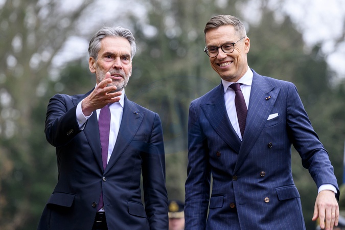 Den Haag, The Netherlands, 2025-12-12 09:02:34THE HAGUE, 12-12-2025, Duivenvoorde Castle. State visit of the President of Finland, Alexander Stubb, to the Netherlands. He is accompanied by his wife, Suzanne Innes-Stubb. President Stubb and Mrs. Innes-Stubb are received by Prime Minister Schoof at Duivenvoorde Castle in Voorschoten. The government lunch will take place in the presence of King Willem-Alexander and Queen Máxima and will focus, among other things, on bilateral relations between the Netherlands and Finland. Arrival of Dick Schoof and Alexander Stubb. PHOTO: NLBeeld/Patrick van Emst, Credit:Avalon