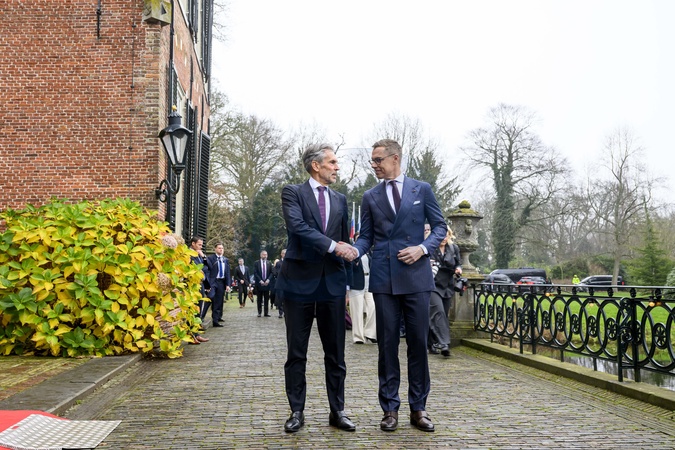 Den Haag, The Netherlands, 2025-12-12 09:02:57THE HAGUE, 12-12-2025, Duivenvoorde Castle. State visit of the President of Finland, Alexander Stubb, to the Netherlands. He is accompanied by his wife, Suzanne Innes-Stubb. President Stubb and Mrs. Innes-Stubb are received by Prime Minister Schoof at Duivenvoorde Castle in Voorschoten. The government lunch will take place in the presence of King Willem-Alexander and Queen Máxima and will focus, among other things, on bilateral relations between the Netherlands and Finland. Arrival of Dick Schoof and Alexander Stubb. PHOTO: NLBeeld/Patrick van Emst, Credit:Avalon