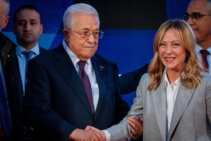 President of Palestine, Mahmoud Abbas, aka Abu Mazen, attends the Atreju political meeting organized by the young militants of Italian right-wing party Brothers of Italy (Fratelli d'Italia) near Castl Sant’Angelo in Rome., Italy on 12 December 2025.