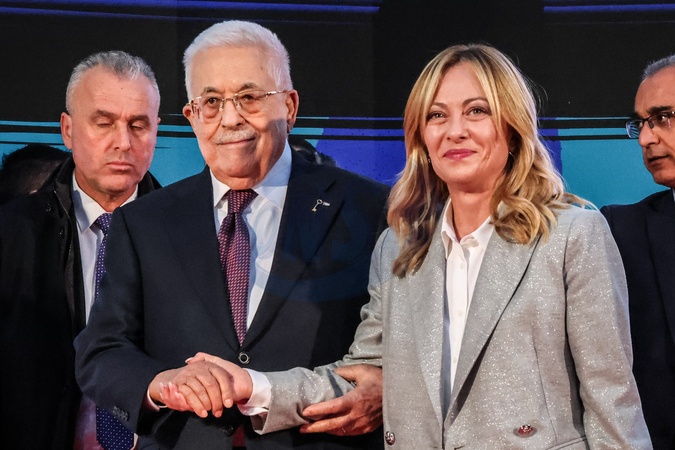 Atreju, demonstration of the Italian right, in the photo the Prime Minister Giorgia Meloni and the President of Palestine Mahmud Abbas . Rome, Italy 12 December 2025, Credit:Francesca Bolla / Avalon