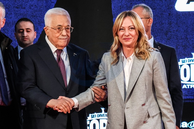 Atreju, demonstration of the Italian right, in the photo the Prime Minister Giorgia Meloni and the President of Palestine Mahmud Abbas . Rome, Italy 12 December 2025, Credit:Francesca Bolla / Avalon