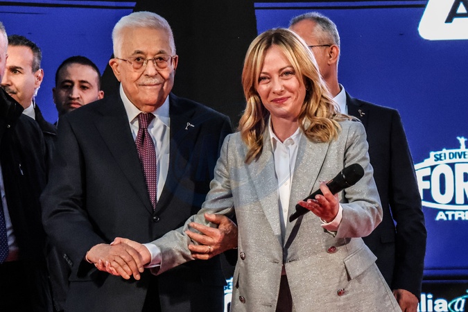 Atreju, demonstration of the Italian right, in the photo the Prime Minister Giorgia Meloni and the President of Palestine Mahmud Abbas . Rome, Italy 12 December 2025, Credit:Francesca Bolla / Avalon