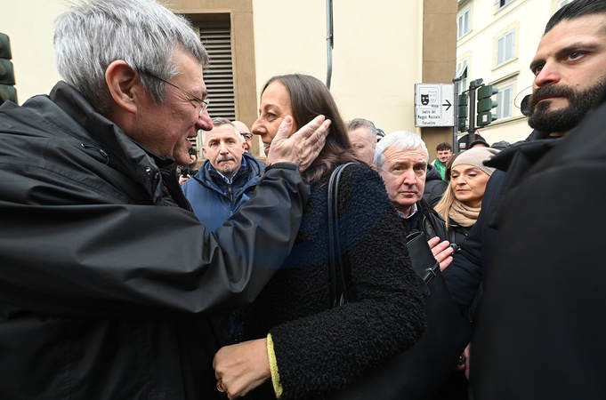 National general strike of the CGIL. Pictured are CGIL secretary Maurizio Landini and Sara Funaro, mayor of Florence. Florence, Italy 12 December 2025, Credit:Aleandro Biagianti / Avalon