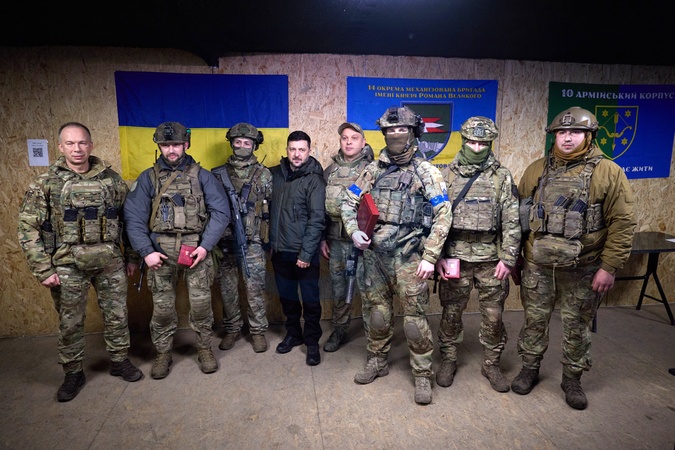 President of Ukraine Volodymyr Zelenskyy meets with soldiers on the Day of the Land Forces