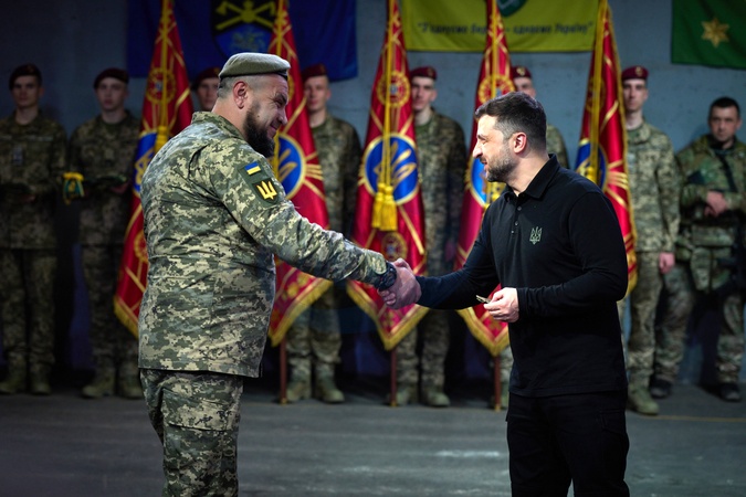 President of Ukraine Volodymyr Zelenskyy meets with soldiers on the Day of the Land Forces