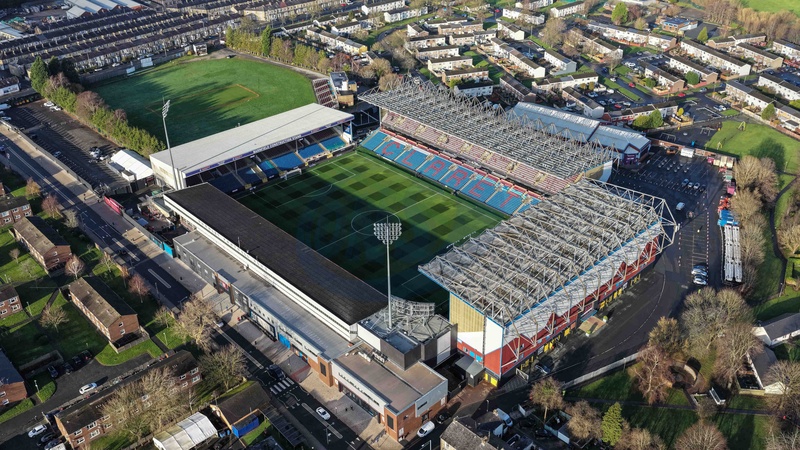A general aerial view of Turf Moor during the Premier League match Burnley vs Fulham at Turf Moor, Burnley, United Kingdom, 13th December 2025, Credit:Mark Cosgrove/News Images / Avalon