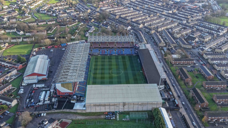 A general aerial view of Turf Moor during the Premier League match Burnley vs Fulham at Turf Moor, Burnley, United Kingdom, 13th December 2025, Credit:Mark Cosgrove/News Images / Avalon