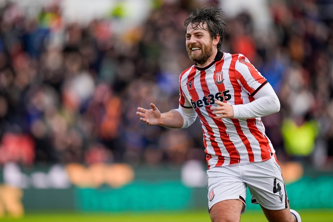 Ben Pearson of Stoke City celebrates his goal to make it 1-0 during the Sky Bet Championship match Stoke City vs Swansea City at Bet365 Stadium, Stoke-on-Trent, United Kingdom, 13th December 2025, Credit:Maynard Manyowa/News Images / Avalon