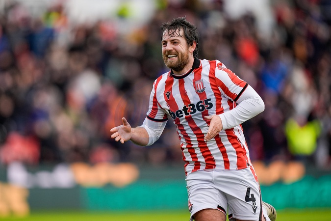 Ben Pearson of Stoke City celebrates his goal to make it 1-0 during the Sky Bet Championship match Stoke City vs Swansea City at Bet365 Stadium, Stoke-on-Trent, United Kingdom, 13th December 2025, Credit:Maynard Manyowa/News Images / Avalon