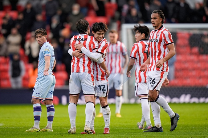 Ben Pearson of Stoke City celebrates his goal to make it 1-0 during the Sky Bet Championship match Stoke City vs Swansea City at Bet365 Stadium, Stoke-on-Trent, United Kingdom, 13th December 2025, Credit:Maynard Manyowa/News Images / Avalon
